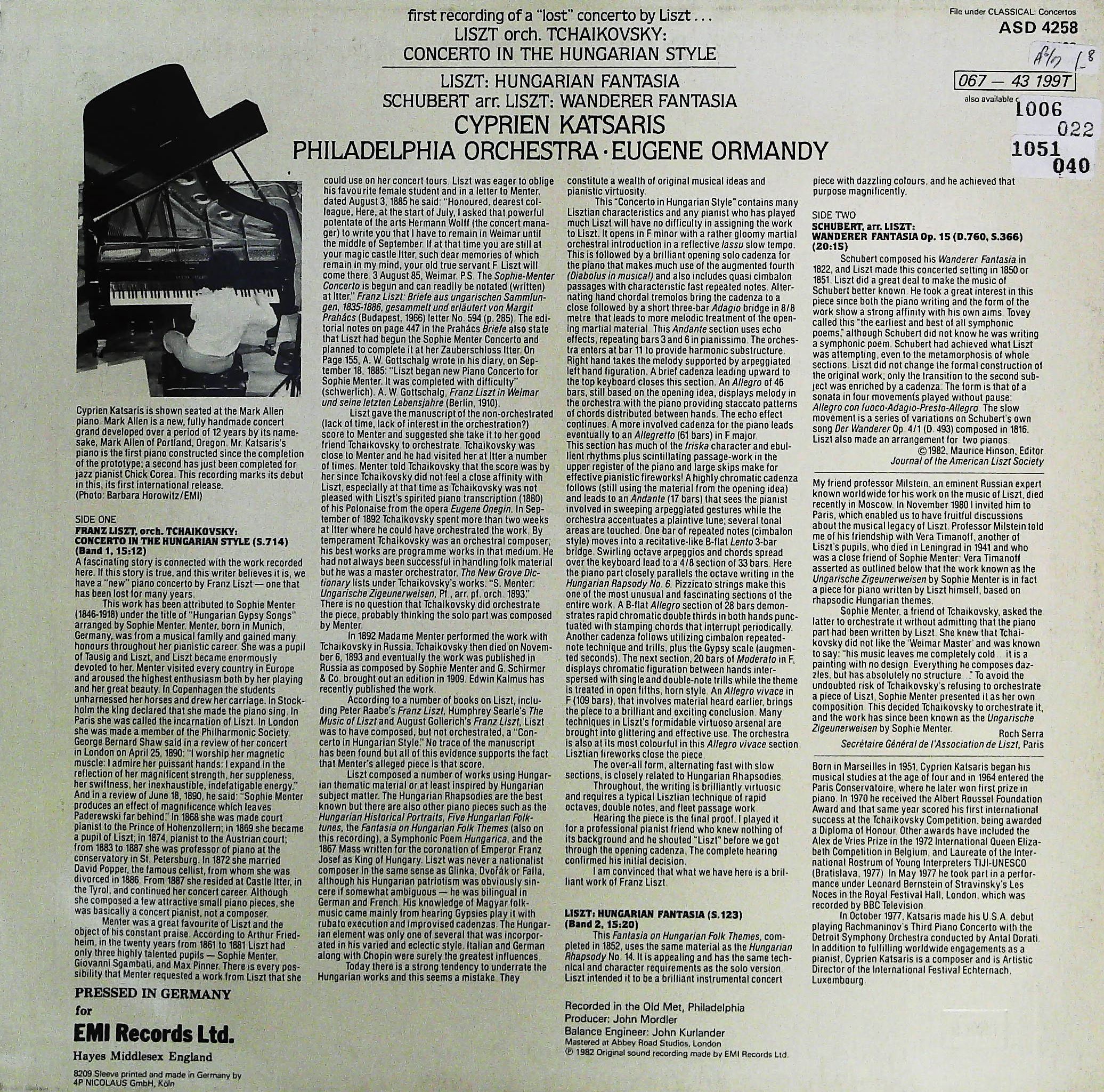 商品コード:1051-040[ELECTROLA] C.カツァリス(pf) E.オーマンディ/フィルハーモニアo. リスト/シューベルト