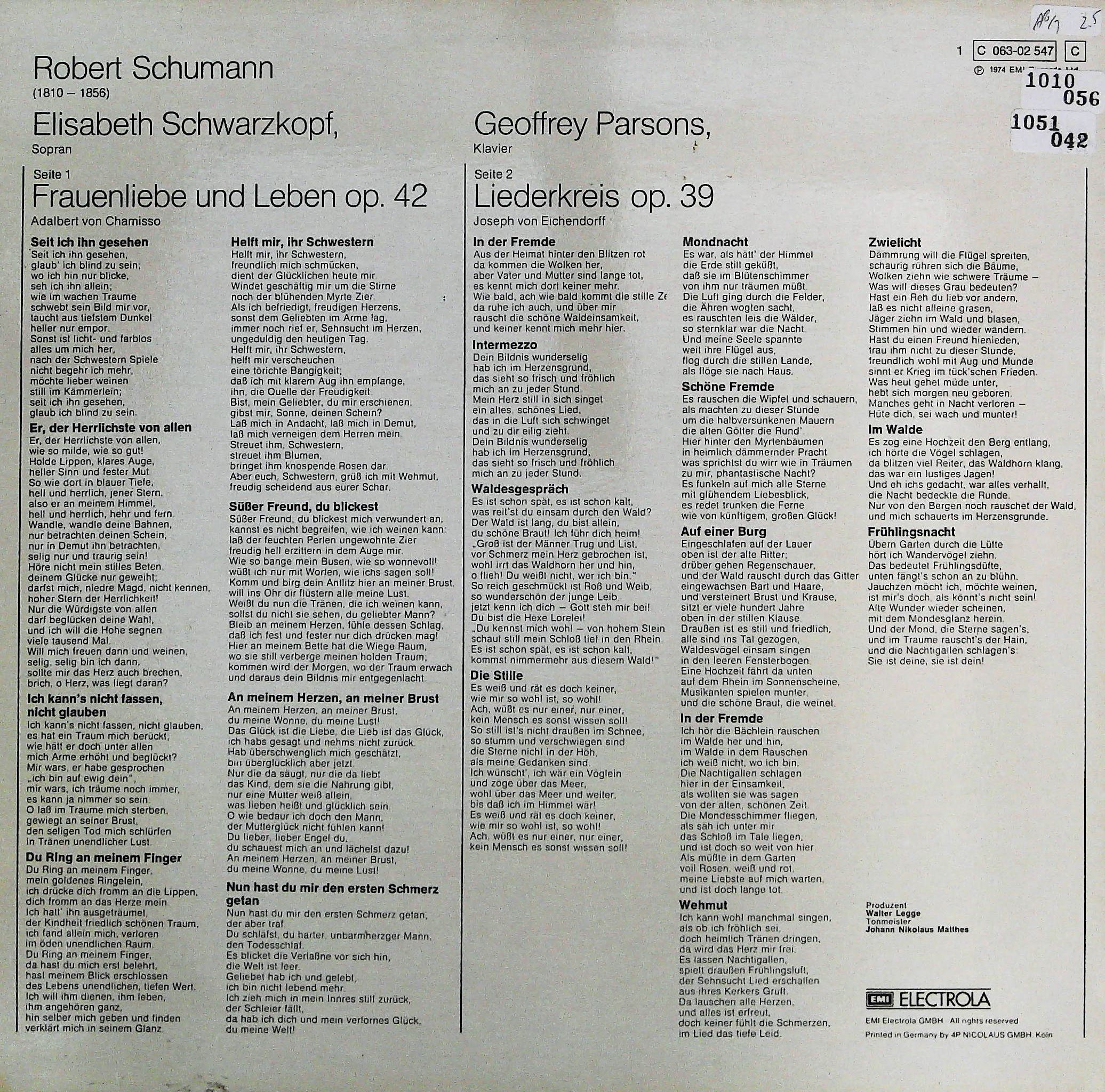 商品コード:1051-042[ELECTROLA] E.シュヴァルツコップ(s) G.パーソンズ(pf) シューマン 女の愛と生涯 リーダークライス