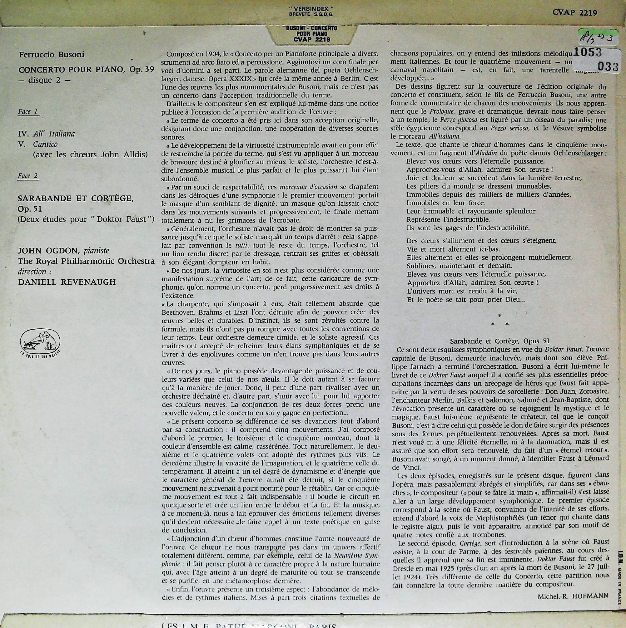 商品コード:1053-033p[La Voix De Son Maître] J.オグドン(pf) D.レヴェナーフ指揮ロイヤルpo./ブゾーニ:Pf協奏曲, サラバンドとコルテージ