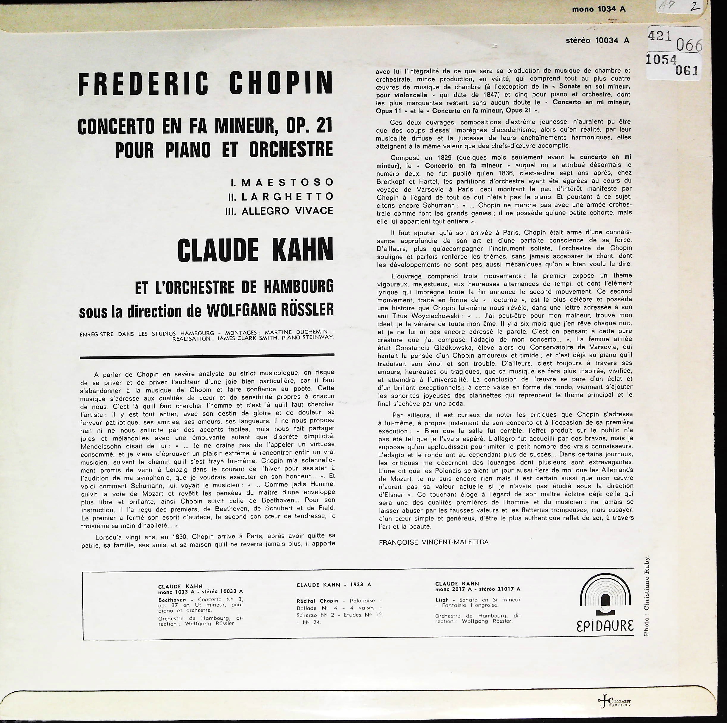 商品コード:1054-061[EPIDAURE] C.カーン(pf) W.レスラー指揮ハンブルクo./ショパン:Pf協奏曲2番