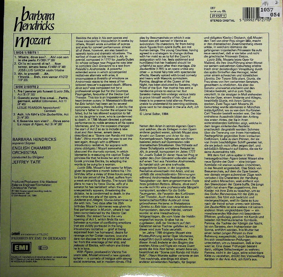 商品コード:1057-054[ELECTROLA] B.ヘンドリックス(s) J.テイト指揮./モーツァルト:オペラ・コンサート・アリア集