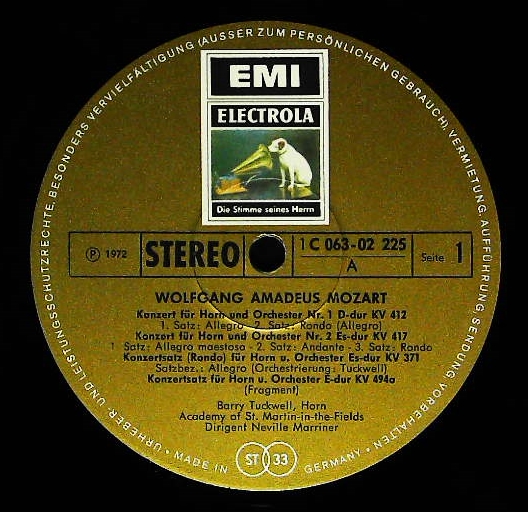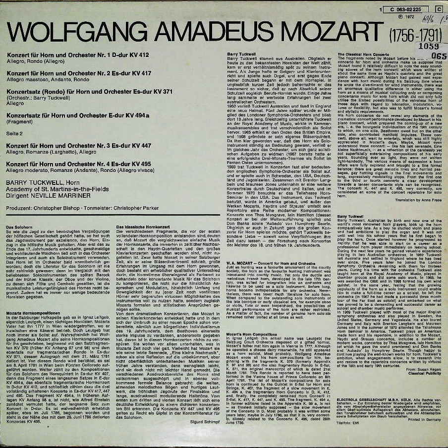 商品コード:1059-065[ELECTROLA] B.タックウェル(hr) N.マリナー指揮アカデミー室内o./モーツァルト:Hr協奏曲集/1~4番, K.494a, ロンドK.371(全6曲)