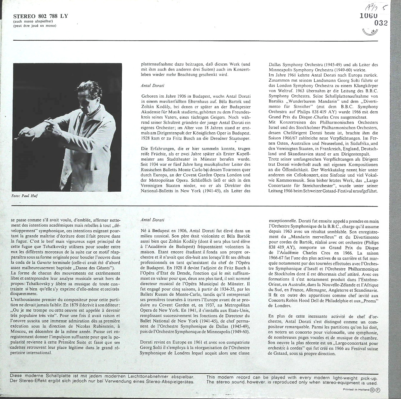 商品コード:1060-032[PHILIPS] A.ドラティ指揮ニュー・フィルハーモニアo./チャイコフスキー:管弦楽組曲1番