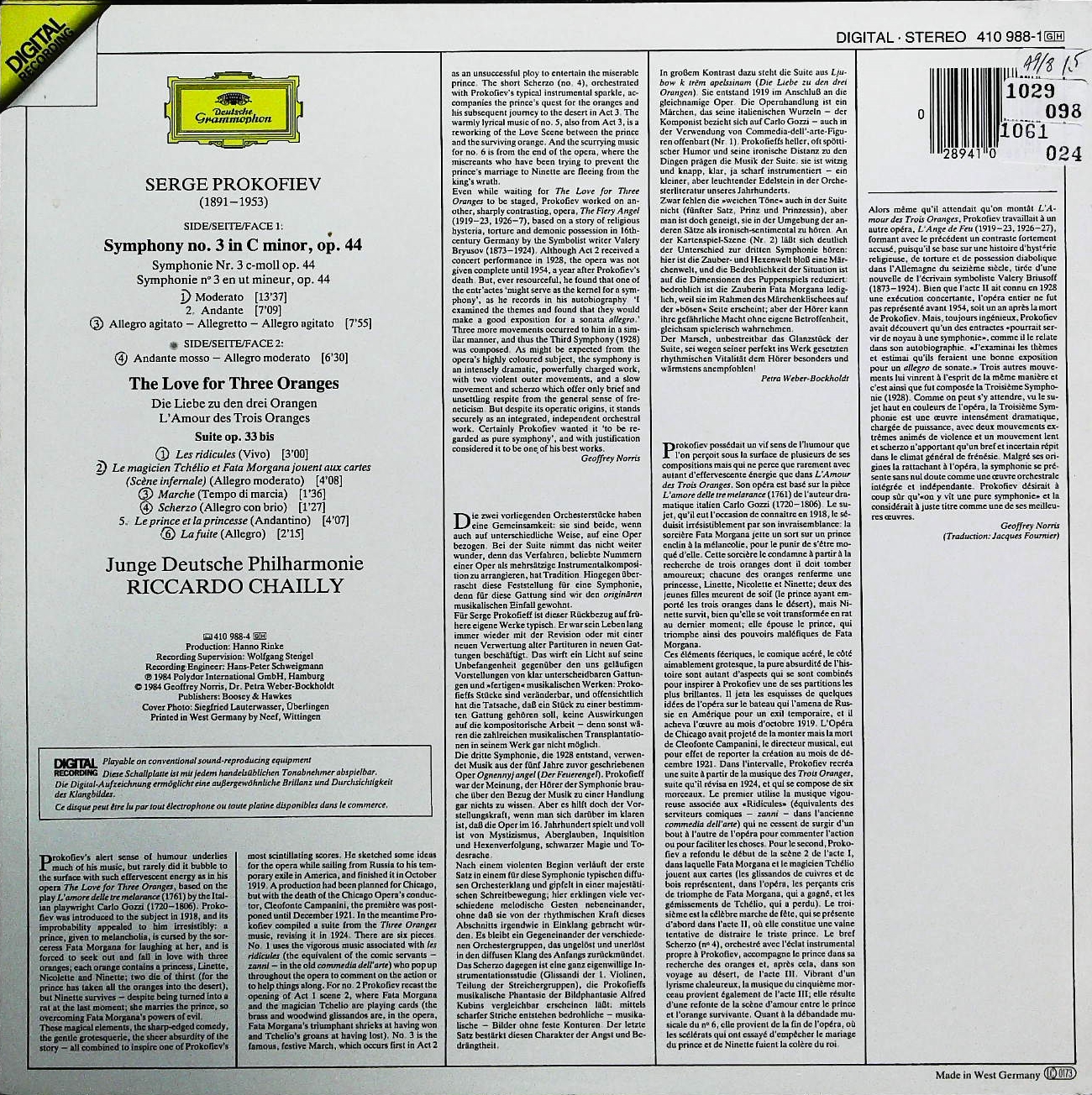 商品コード:1061-024[DGG] R.シャイー指揮ユンゲ・ドイチェpo./プロコフィエフ:交響曲3番, 組曲「3つのオレンジへの恋」