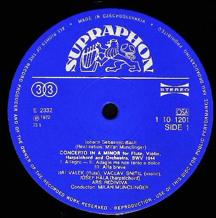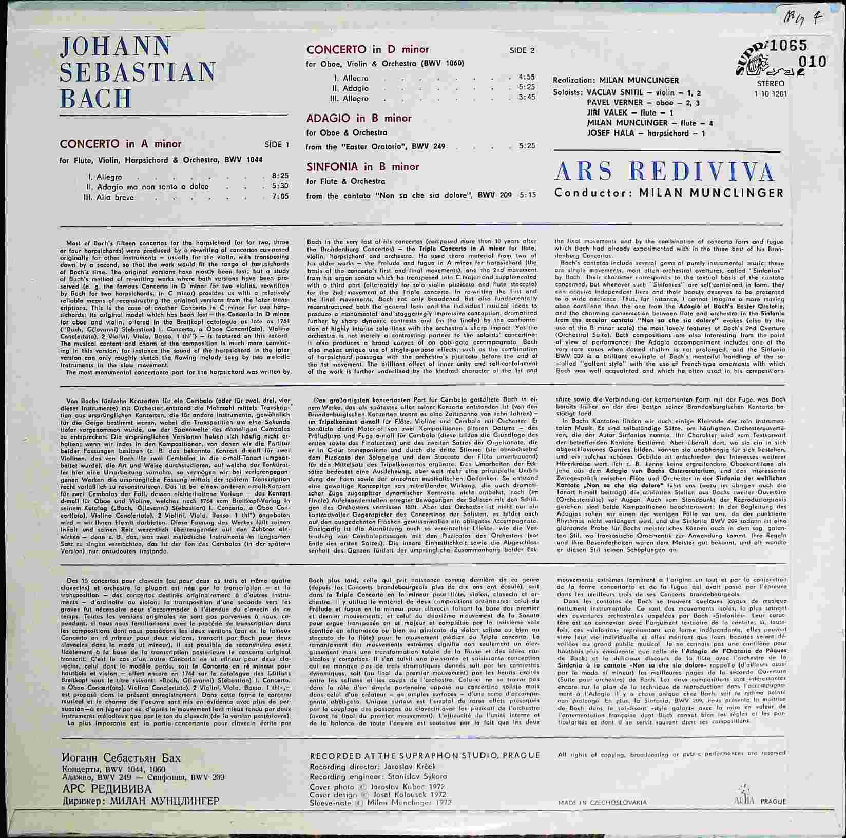 商品コード:1065-010[SUPRAPHON] M.ムンツリンゲル指揮アルス・レディヴィヴァ V.スニーティル(vn) 他/バッハ:Fl・Vn・Cembのための協奏曲B.1044 他