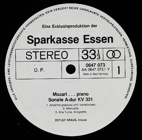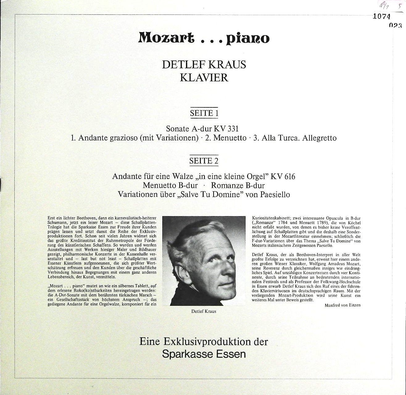 商品コード:1074-023t[SPARKASSE ESSEN] D.クラウス(pf)/モーツァルト:Pfソナタ11番K.331, 小さな自動オルガンのためのアンダンテK.616 他