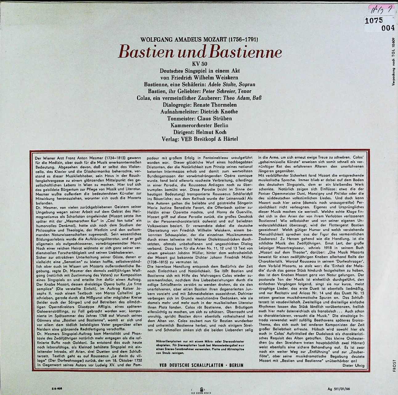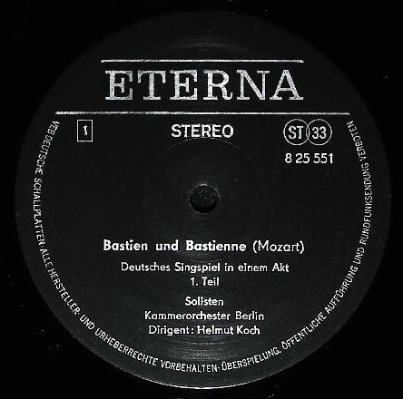 商品コード:1075-004t[ETERNA] H.コッホ指揮ベルリン室内o. A.シュトルテ(s) P.シュライアー(t) T.アダム(bs)/モーツァルト:ジングシュピール「バスティアンとバスティエンヌ」K.50