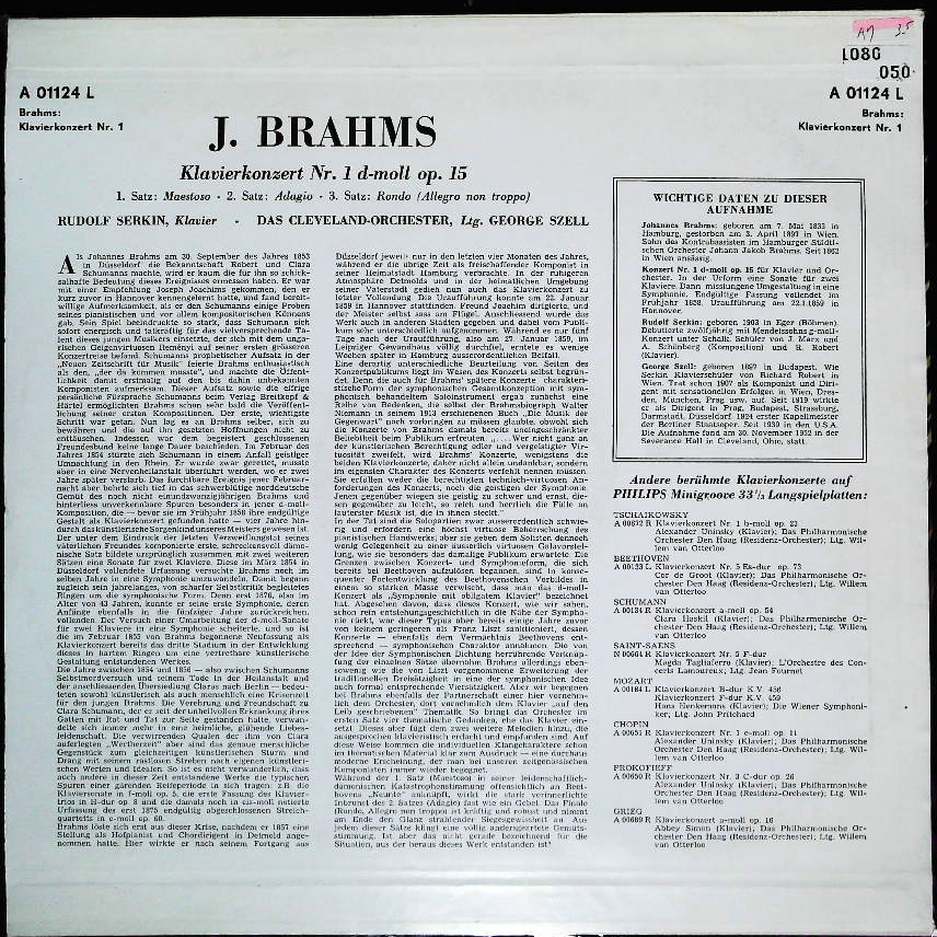 商品コード:1080-050t[PHILIPS] R.ゼルキン(pf) G.セル指揮クリーヴランドo./ブラームス:Pf協奏曲1番