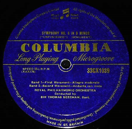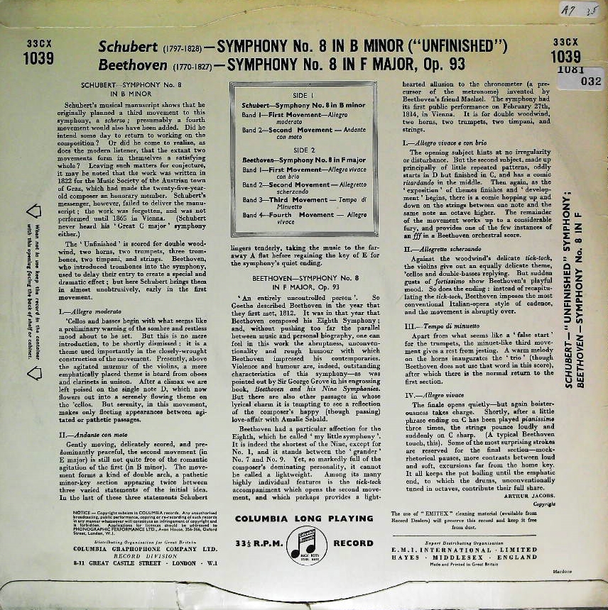 商品コード:1081-032[Columbia] T.ビーチャム指揮ロイヤルpo./シューベルト:交響曲8番「未完成」, ベートーヴェン:交響曲8番
