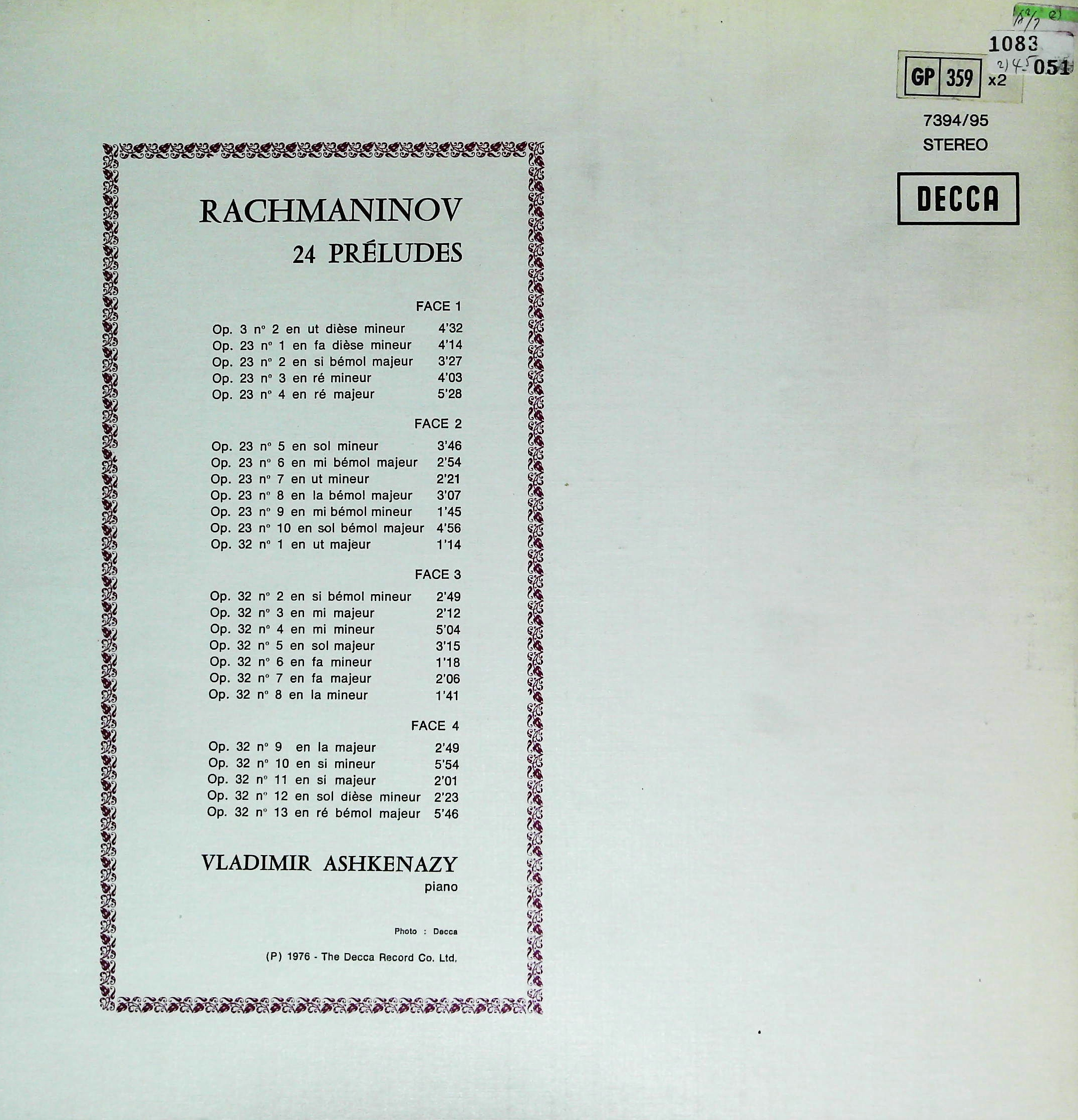 商品コード:1083-051p[DECCA] V.アシュケナージ(pf)/ラフマニノフ:24の前奏曲(全集)