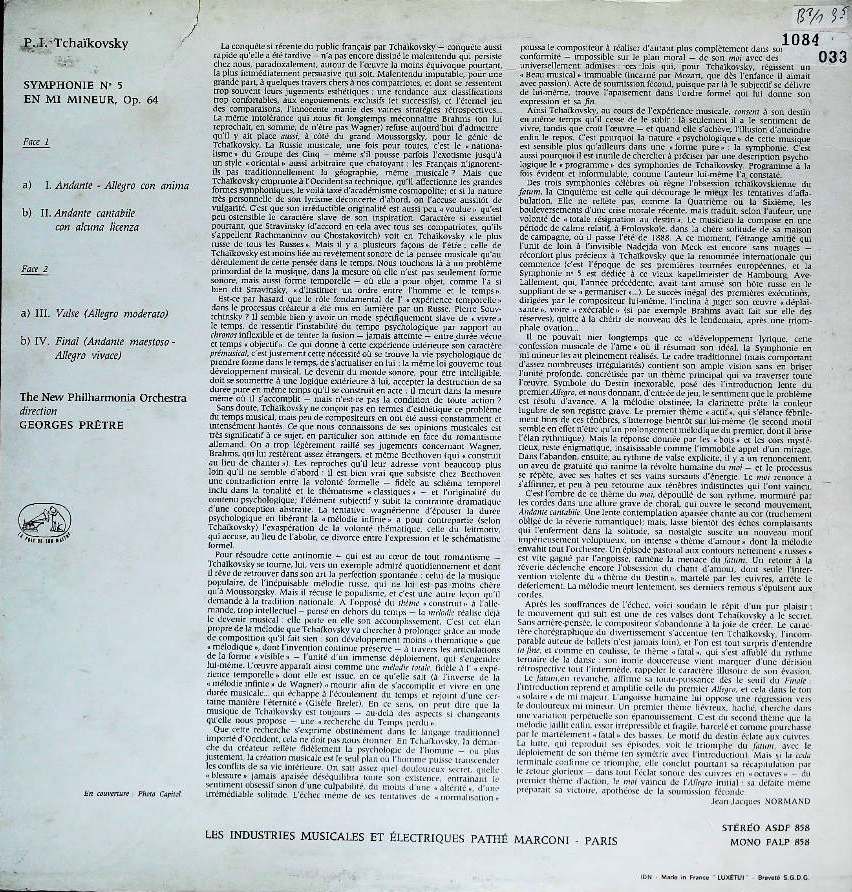 商品コード:1084-033[La Voix De Son Maître] G.プレートル指揮ニュー・フィルハーモニアo./チャイコフスキー:交響曲5番