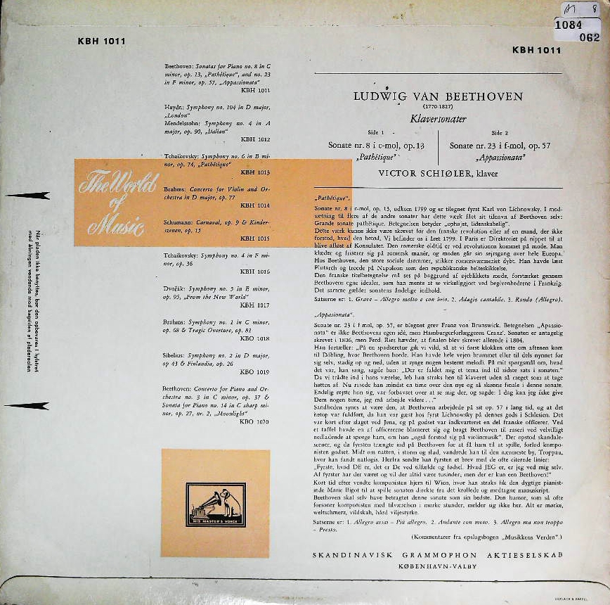 商品コード:1084-062[THE WORLD OF MUSIC SERIES] V.シェラー(pf)/ベートーヴェン:Pfソナタ8番「悲愴」, 23番「熱情」