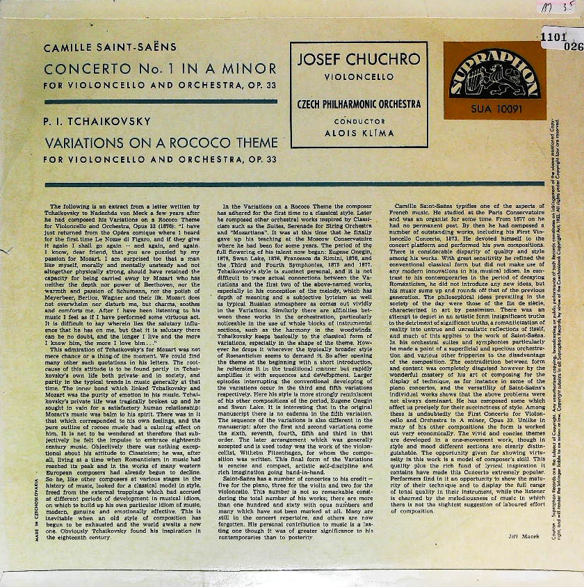 商品コード:1101-026t[SUPRAPHON] J.フッフロ(vc) A.クリーマ指揮チェコpo./サン・サーンス:Vc協奏曲1番, チャイコフスキー:ロココ変奏曲