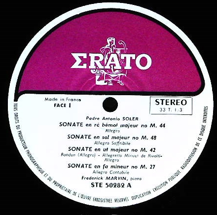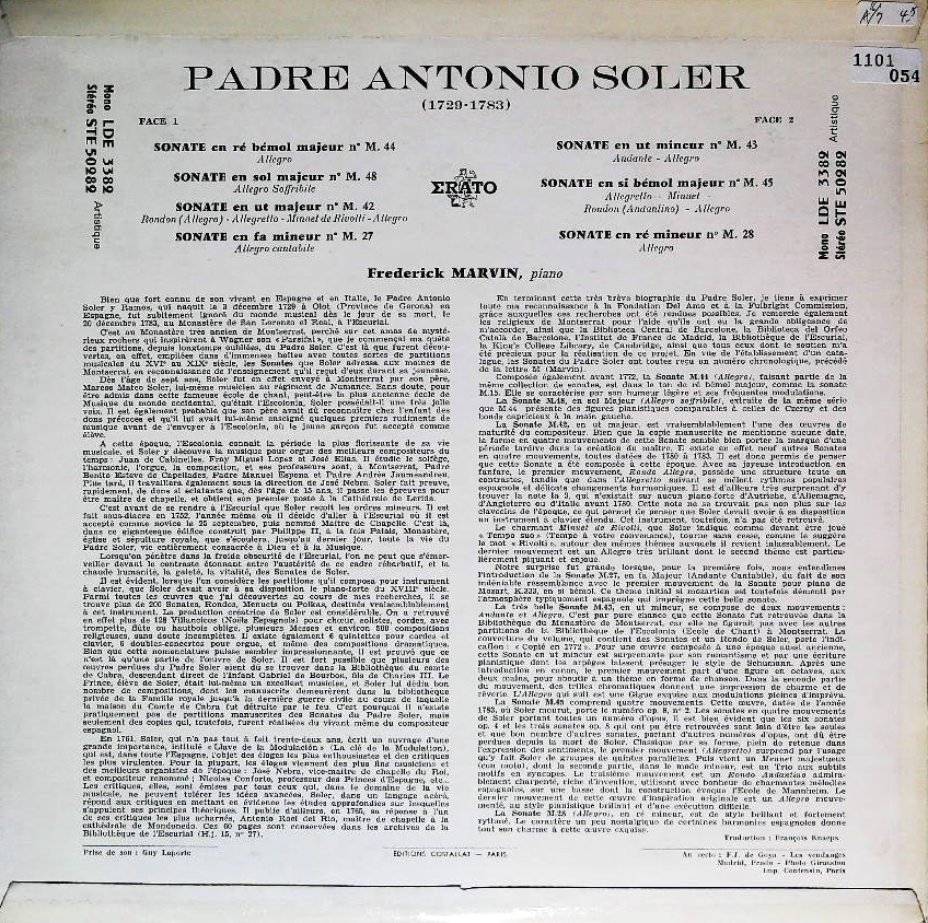 商品コード:1101-054[ERATO] F.マーヴィン(pf)/ソレール:Pfソナタ(7曲)