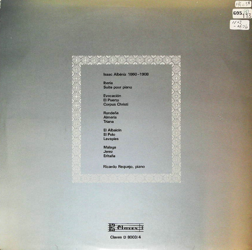 商品コード:1103-062b[CLAVES] R.レケホ(pf)/アルベニス:イベリア、12の新しい印象(全12曲)