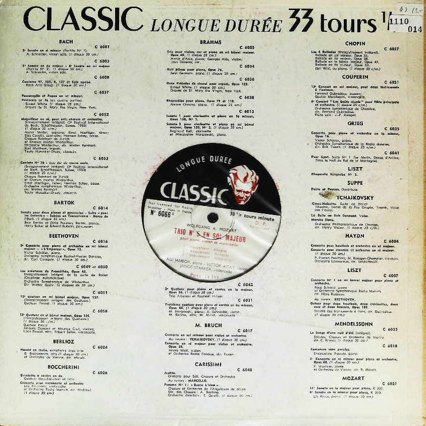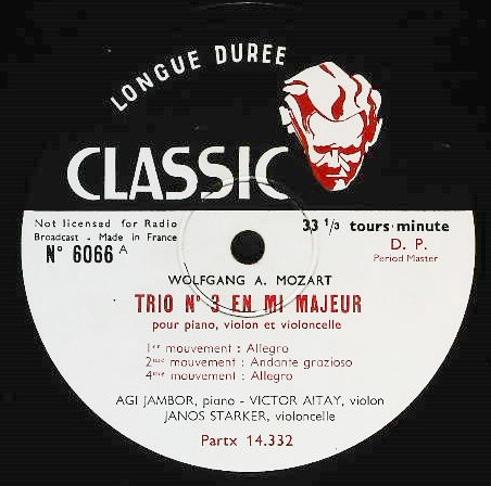 商品コード:1110-014[CLASSIC] J.シュタルケル(vc) A.ヤンボル(pf) V.アイタイ(vn)/モーツァルト:Pfトリオ3, 6番