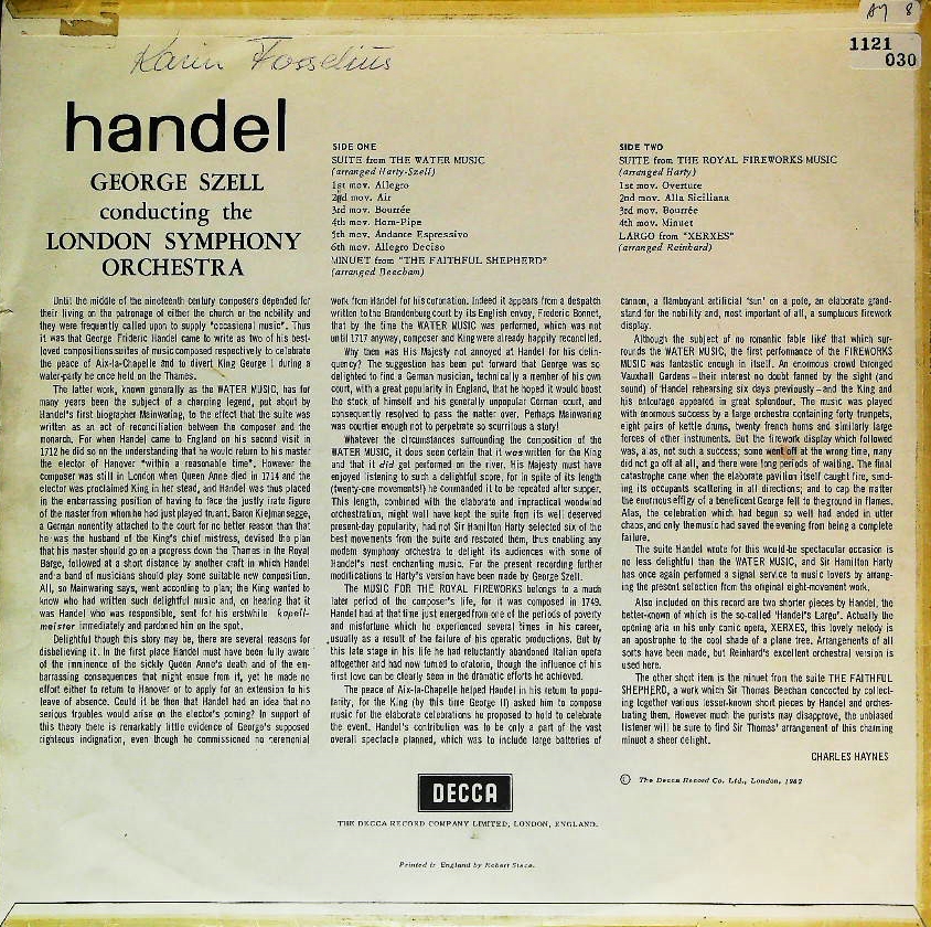 商品コード:1121-030[DECCA] G.セル指揮ロンドンso./ヘンデル:組曲「水上の音楽」より 他