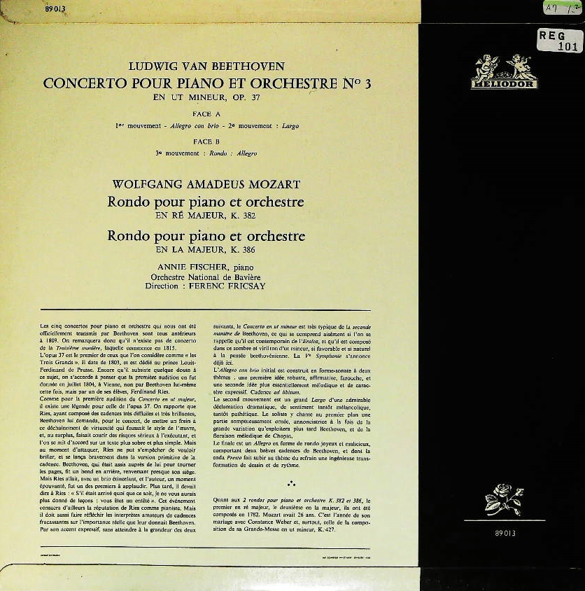 商品コード:REG-101p[仏HELIODOR] A.フィッシャー(pf) F.フリッチャイ指揮バイエルン国立o. / ベートーヴェン:Pf協奏曲3番, モーツァルト:Pfと管弦楽のためのロンドK.382, 386