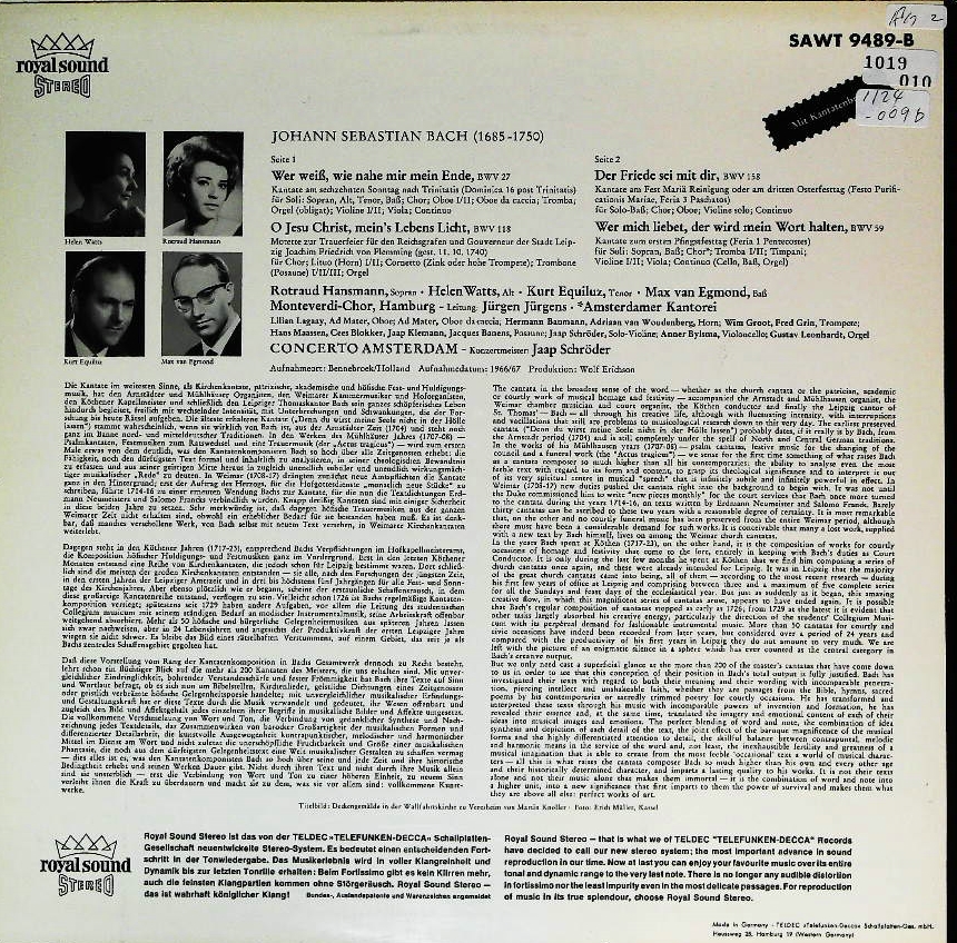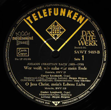 商品コード:1124-009b[TELEFUNKEN] J.ユルゲンス指揮コンチェルト・アムステルダム モンテヴェルディcho./バッハ:カンタータ27, 59, 118, 158番