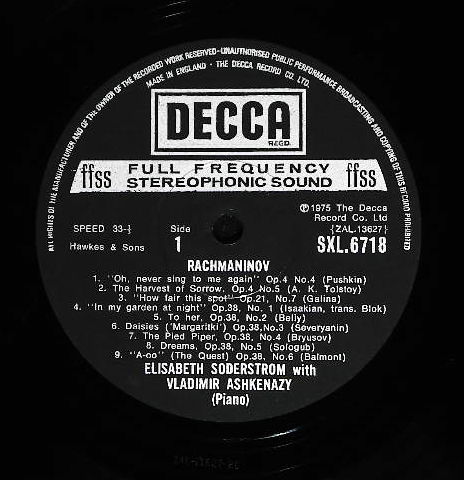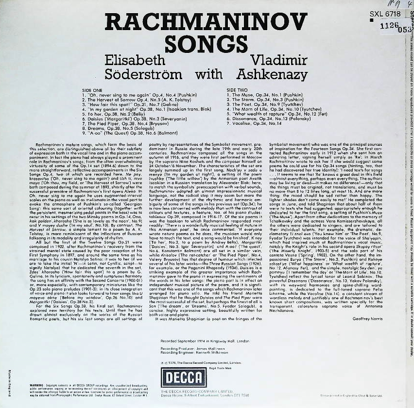商品コード:1126-053[DECCA] E.ゼーダーシュトレーム(s) V.アシュケナージ(pf)/ラフマニノフ:歌曲集-1/乙女よ、私のために歌わないで 他