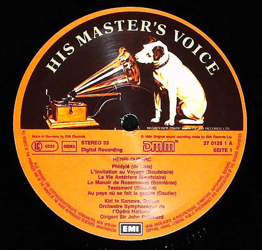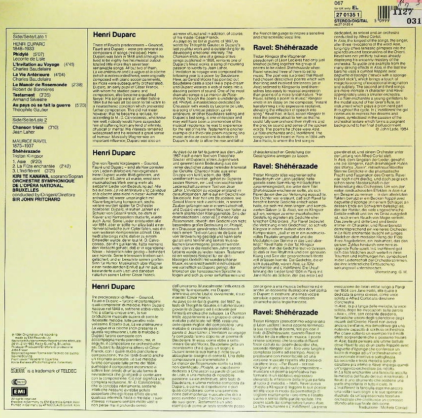 商品コード:1127-031t[ELECTROLA] K.T.カナワ(s) J.プリッチャード指揮ブリュッセル国立モネ歌劇場o./Kiri Te Kanawa・歌曲集(全10曲)/デュパルク: 歌曲「フィデレ」 他