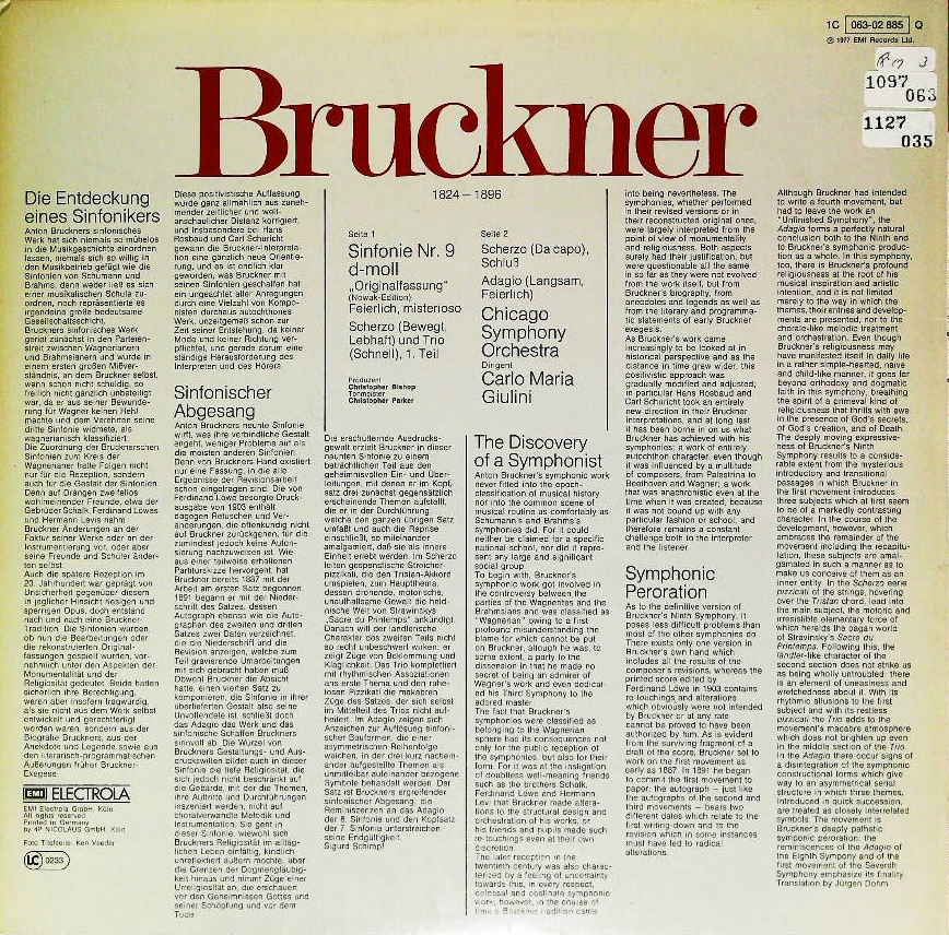商品コード:1127-035[ELECTROLA] C.M.ジュリーニ指揮シカゴso./ブルックナー:交響曲9番(原典版)