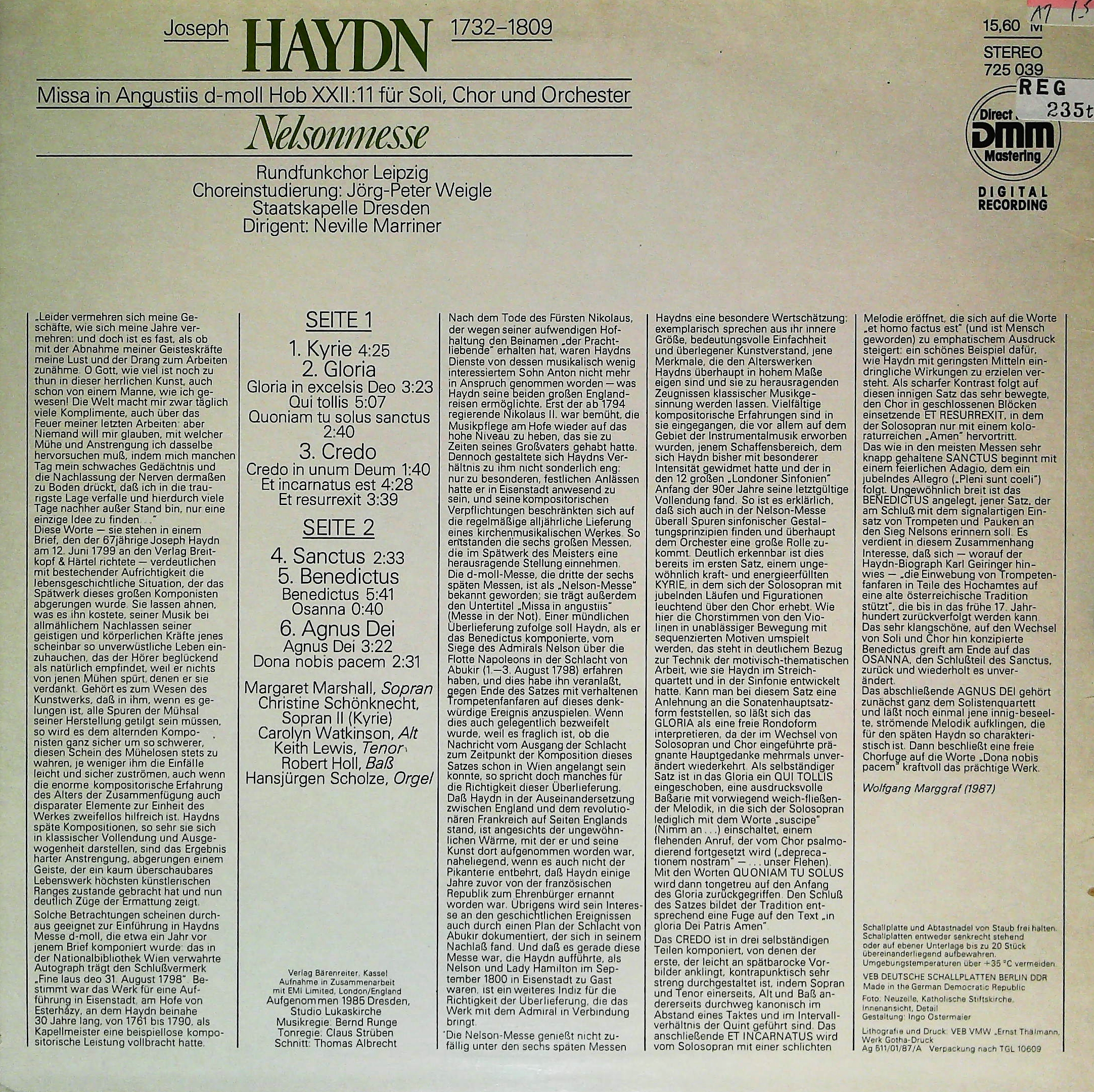 演奏者:N.マリナー指揮ドレスデンsk. M.マーシャル(s)C.ワトキンソン(a)K.ルイス(t)R.ホール(bs)