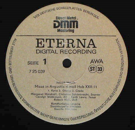 商品コード:REG-235t[東独ETERNA] N.マリナー指揮ドレスデンsk. M.マーシャル(s) ワトキンソン(a) K.ルイス(t) R.ホール(bs) / ハイドン:深き悲しみのミサ