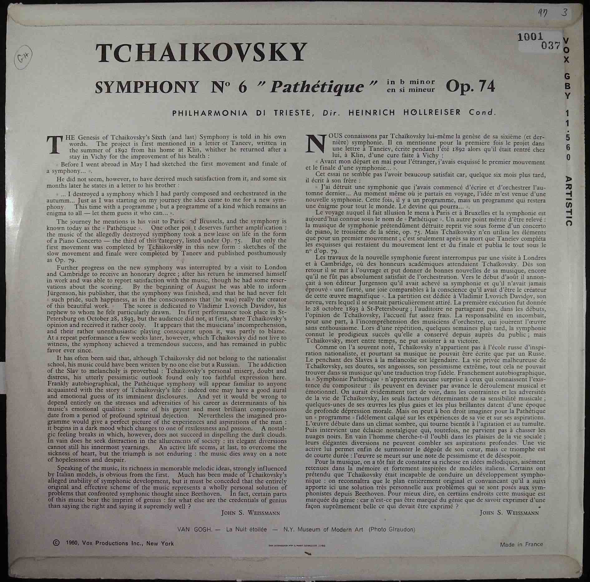 商品コード:1001-037[VOX] H.ホルライザー指揮 チャイコフスキー 「悲愴」