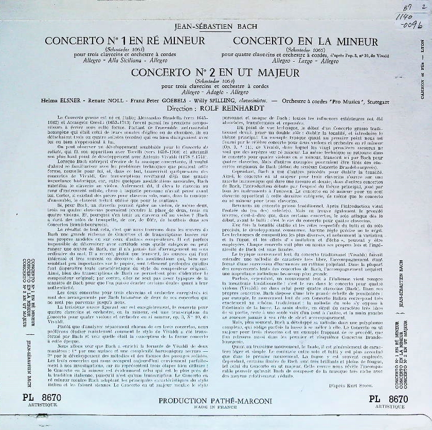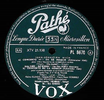 商品コード:1140-009b[Pathé-VOX] H.エルスナー R.ノル F.P.ゲーベルス W.スピリング(cemb) R.ラインハルト指揮/バッハ:3Cemb協奏曲1, 2番, 4Cemb協奏曲