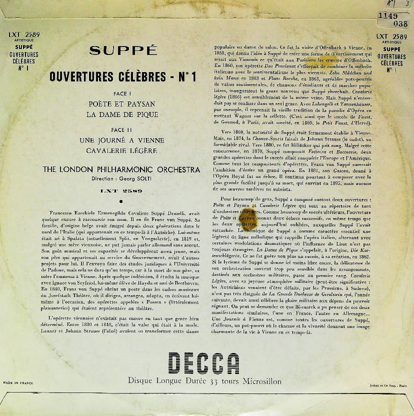 商品コード:1149-038[DECCA] G.ショルティ指揮ロンドンpo./スッペ:序曲集