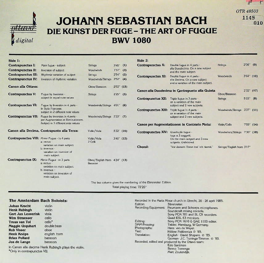 商品コード:1149-010t[OTTAVO] アムステルダム・バッハ・ソロイスツ/バッハ:フーガの技法