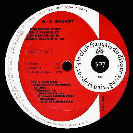 商品コード:1160-024b[Le Club Français Du Disque] P.サンカン, J.B.ポミエ, C.シリー(pf) D.コラファス指揮コンセール・ラムルーo. / モーツァルト:2Pf協奏曲K.365, 3Pf協奏曲K.242