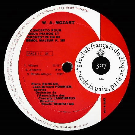 商品コード:1160-024c[Le Club Français Du Disque] P.サンカン, J.B.ポミエ, C.シリー(pf) D.コラファス指揮コンセール・ラムルーo. / モーツァルト:2Pf協奏曲K.365, 3Pf協奏曲K.242