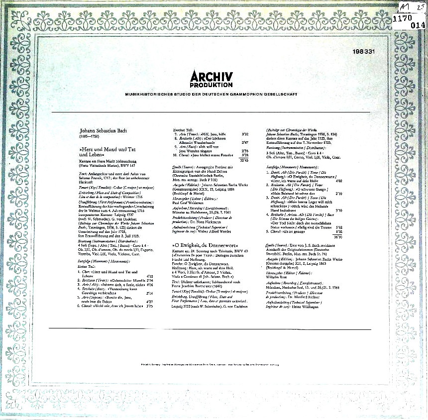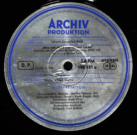 商品コード:1170-014[Archiv Produktion] K.リヒター指揮ミュンヘン・バッハo.cho. アンスバッハ・バッハ週間のソリスト U.ブッケル(s) 他/ バッハ:カンタータ147, 60番