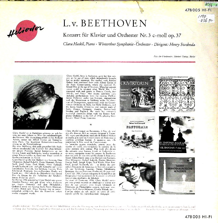 商品コード:1170-036pc[HELIODOR] C.ハスキル(pf) H.スヴォボダ指揮ヴィンタートゥールso. / ベートーヴェン:Pf協奏曲3番Op.37