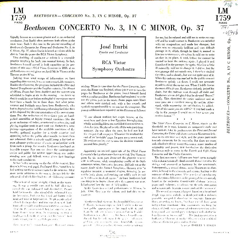商品コード:1171-054pb[RCA] J.イトゥルビ(pf)指揮 RCAヴィクターso. / ベートーヴェン:Pf協奏曲3番OP.37