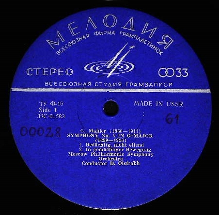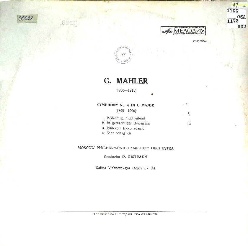 商品コード:1172-062n[MELODIYA] D.オイストラフ指揮モスクワ・フィルハーモニックso. G.ヴィスネフスカヤ(s) / マーラー:交響曲4番