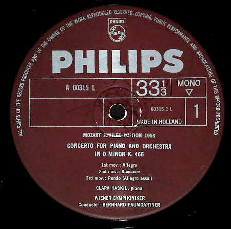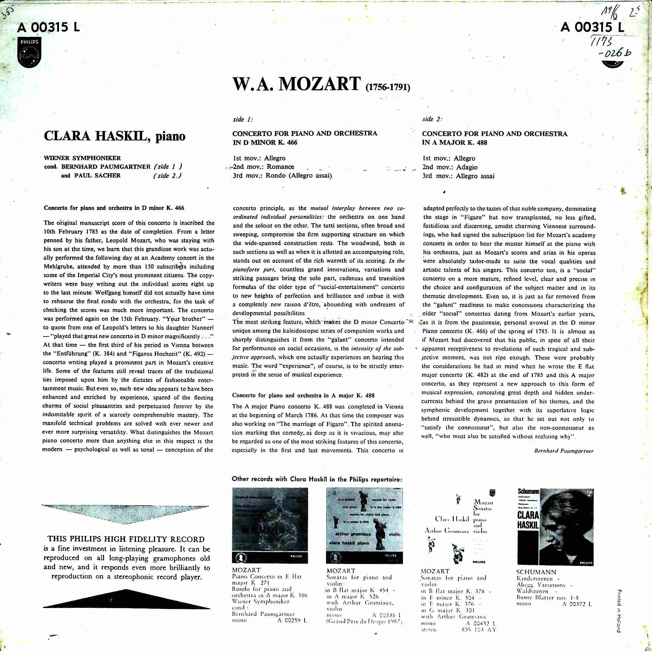 商品コード:1173-026b[PHILIPS] C.ハスキル(pf) B.パウムガルトナー P.ザッハー指揮ウィーンso. / モーツァルト:Pf協奏曲20番K.466, 23番K.488