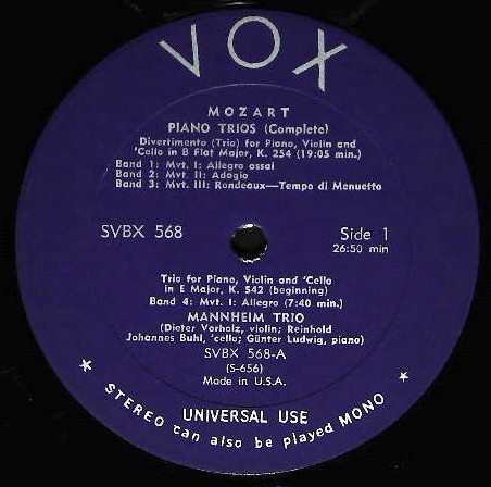 商品コード:1176-010[VOX] W.トリープスコルン(cl) G.レメン(va) マンハイム・トリオ Gルートヴィヒ(pf) D.フォルホルツ(vn) R.J.ブール(vc) / モーツァルト:Pfトリオ(全6曲), ClトリオK.498「ケーゲルシュタット」