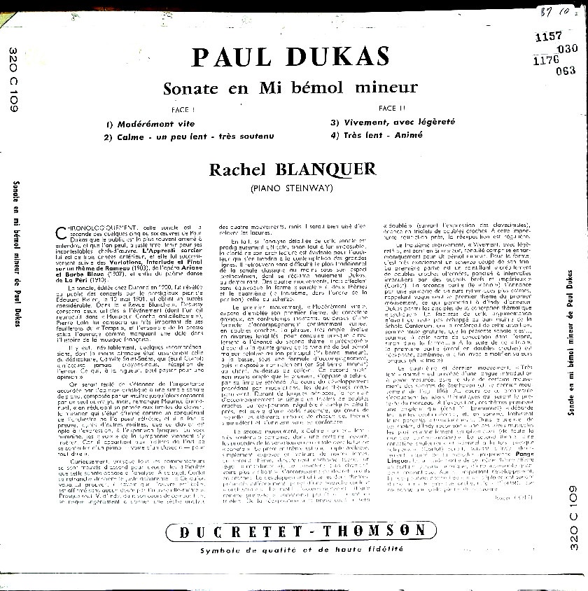 商品コード:1176-063[Ducretet Thomson] R.ブランケール(pf) / デュカス:Pfソナタ 変ホ短調