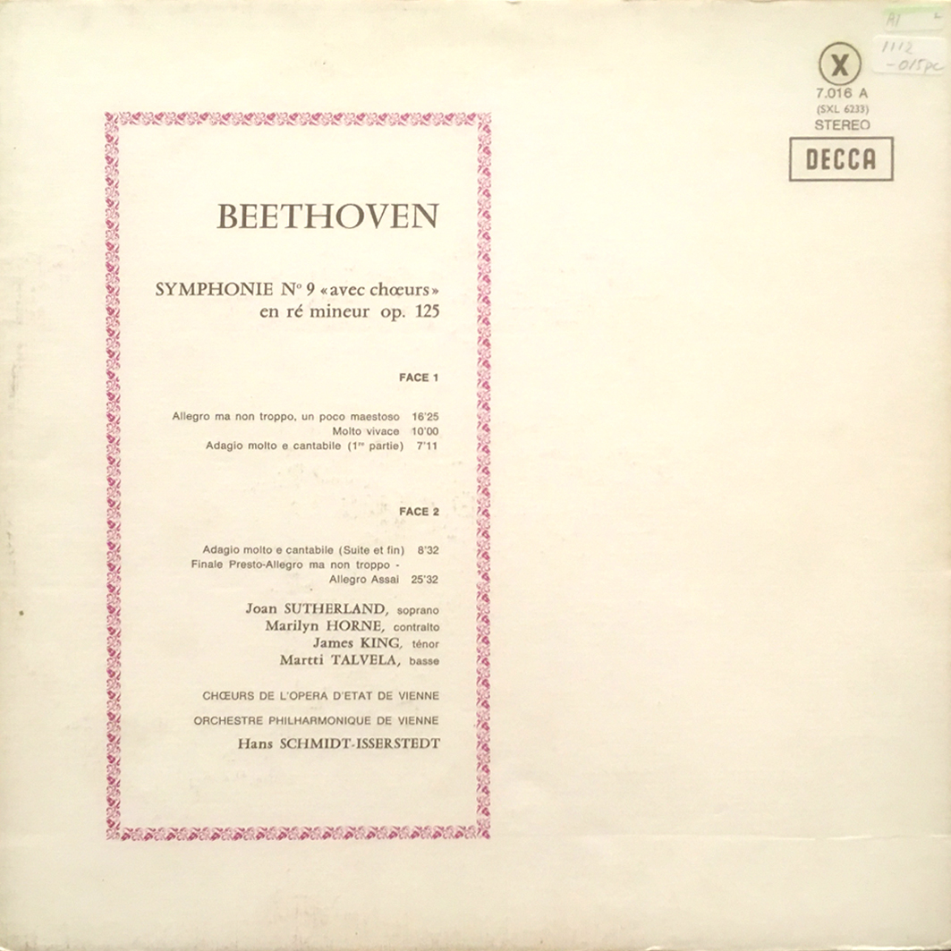 商品コード:1112-015pc[DECCA] H.シュミット・イッセルシュテット指揮ウィーンpo. ウィーン国立歌劇場cho. J.サザーランド(s) 他/ベートーヴェン:交響曲9番「合唱」