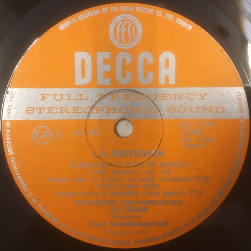 商品詳細:第9はED1が存在するが1度しか入荷が無い。その価格は3万円だった。余りに入荷が無いためED2がオリジナル?と思いたくなるほど。録音は良く、かなりスッキリしたオケだ。余分な贅肉を取り払った骨格だけのようなストレートな印象。1枚だからといって特別スピードが速いわけではないが、よどみなく颯爽と曲は流れる。B面2/3が合唱となるが、大げさなコケ脅しのような所がなく、あくまで淡々と進める。闇の中から浮かび上がる島のような佇まいがこの人流。アンセルメの最初の第9からSXLは一枚だった。H.シュミット・イッセルシュテット指揮ウィーンpo.はDECCAに全曲録音を行った。