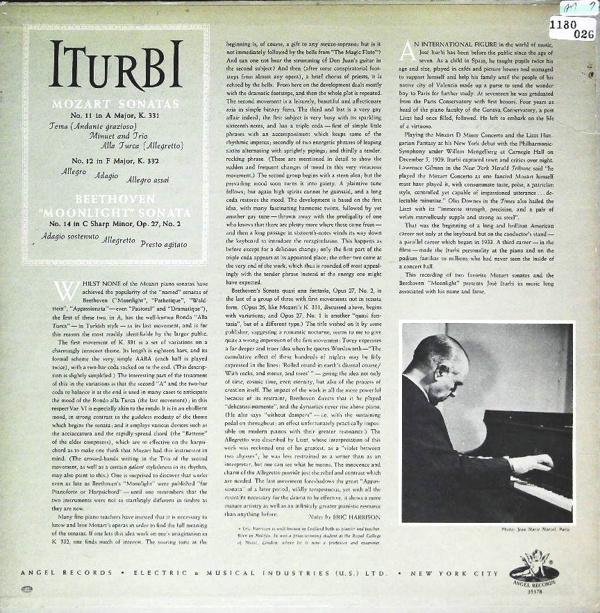商品コード:1180-026p[ANGEL] J.イトゥルビ(pf) / モーツァルト:Pfソナタ11番K.331, 12番K.332, ベートーヴェン:Pfソナタ14番Op.27-2「月光」