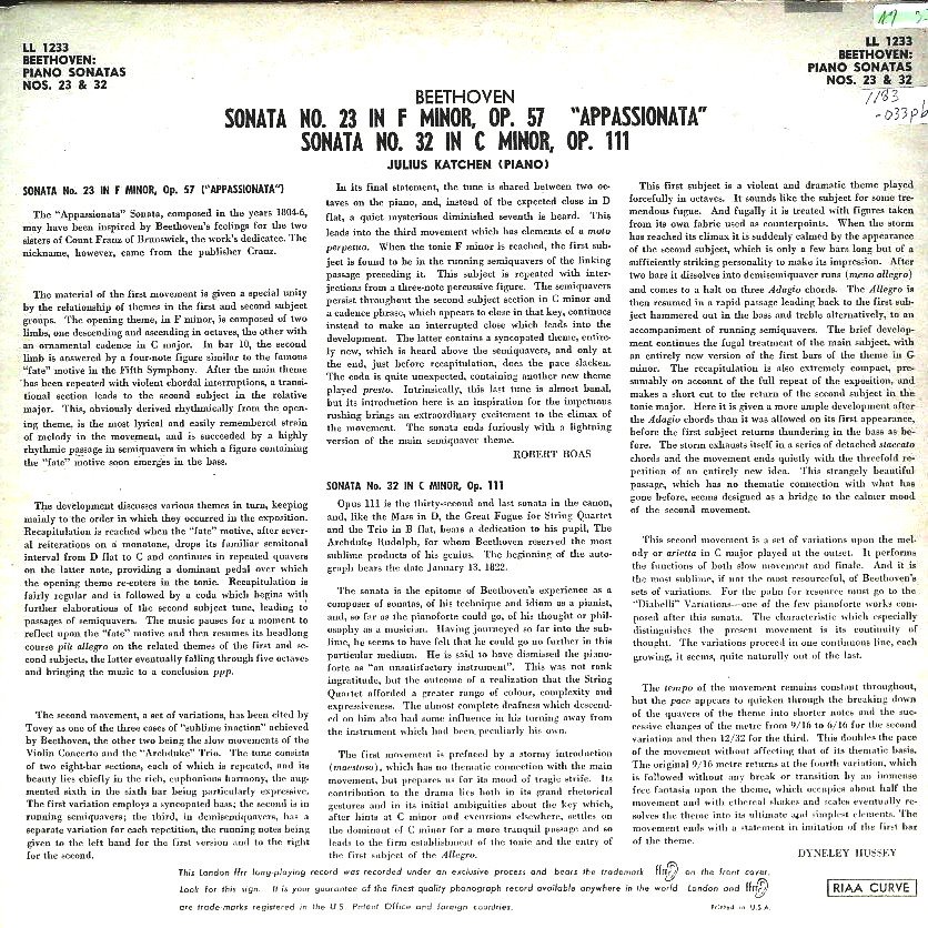 商品コード:1183-033pb[LONDON] J.カッチェン(pf) / ベートーヴェン:Pfソナタ23番「熱情」, 32番Op.111