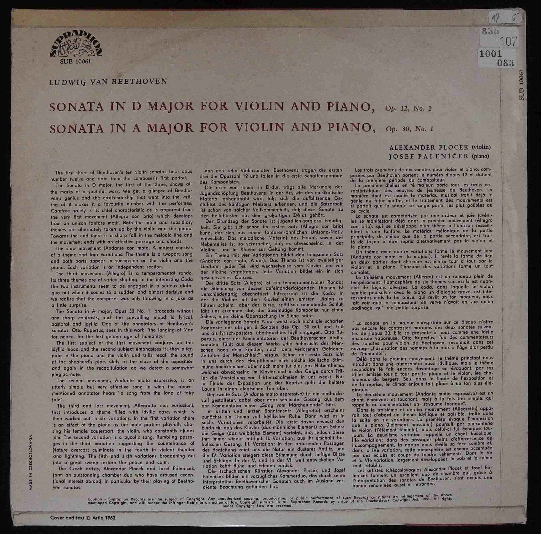 商品コード:1001-083[SUPRAPHON] A.プロツェク/J.パーレニーチェク ベートーヴェン:Vnソナタ1/6番