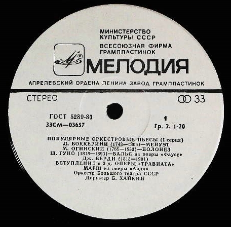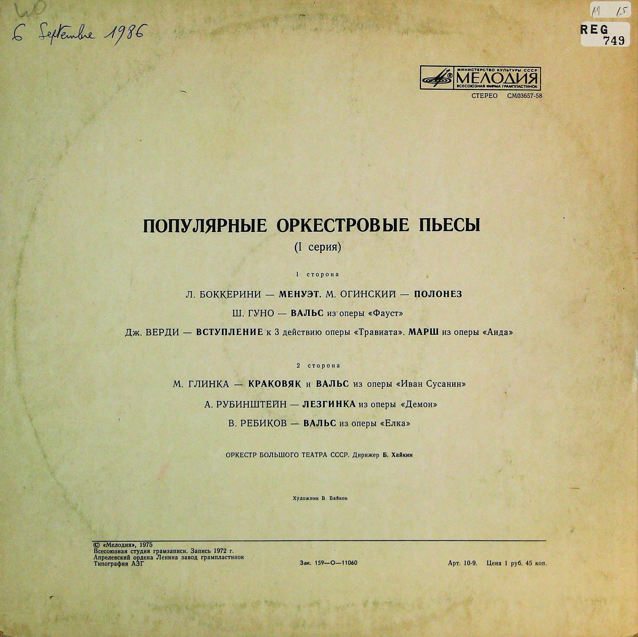商品コード:REG-749[露MELODIYA] B.ハイキン指揮ボリショイto. / 管弦楽曲集/ボッケリーニ, グノー, ヴェルディ, グリンカ, ルビンシテイン, レビコフ