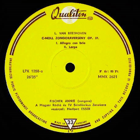 商品コード:1190-028p[QUALITON] A.フィッシャー(pf) H.エッセル指揮ハンガリー放送so. / ベートーヴェン:Pf協奏曲3番Op.37, レオノーレ序曲2番Op.72