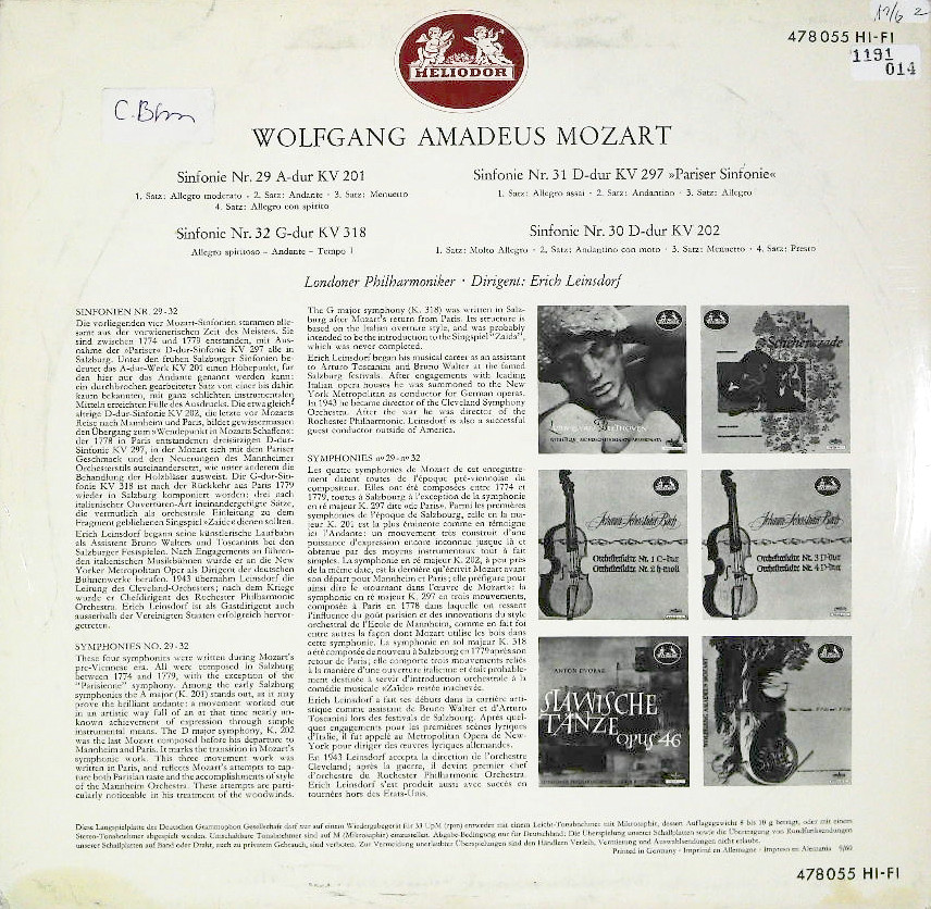商品コード:1191-014[HELIODOR] E.ラインスドルフ指揮ロイヤルpo. / モーツァルト:交響曲29番K.201, 30番K.202, 31番K.297「パリ」, 32番K.318