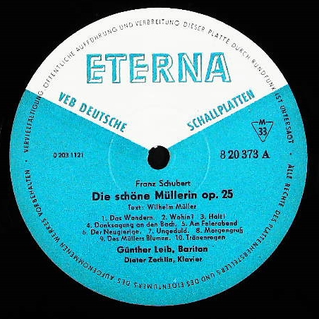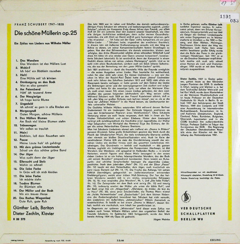 商品コード:1191-053t[ETERNA] G.ライプ(br) D.ツェヒリン(pf) / シューベルト:美しき水車小屋の娘Op.25(全20曲)